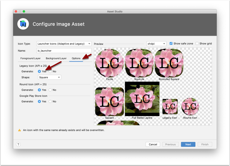 - Android adaptive icons. It is now possible to configure your Android apps to use adaptive icons. To use adaptive icons, generate them using the Image Asset Editor in Android Studio and then choose the resulting res folder in the android standalone settings pane