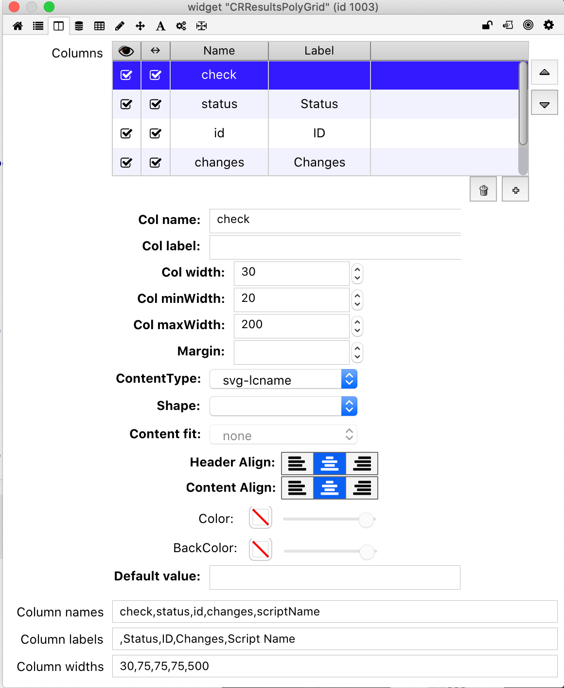 set the pgTextOfCell of widget "CRResultsPolyGrid" to "check"