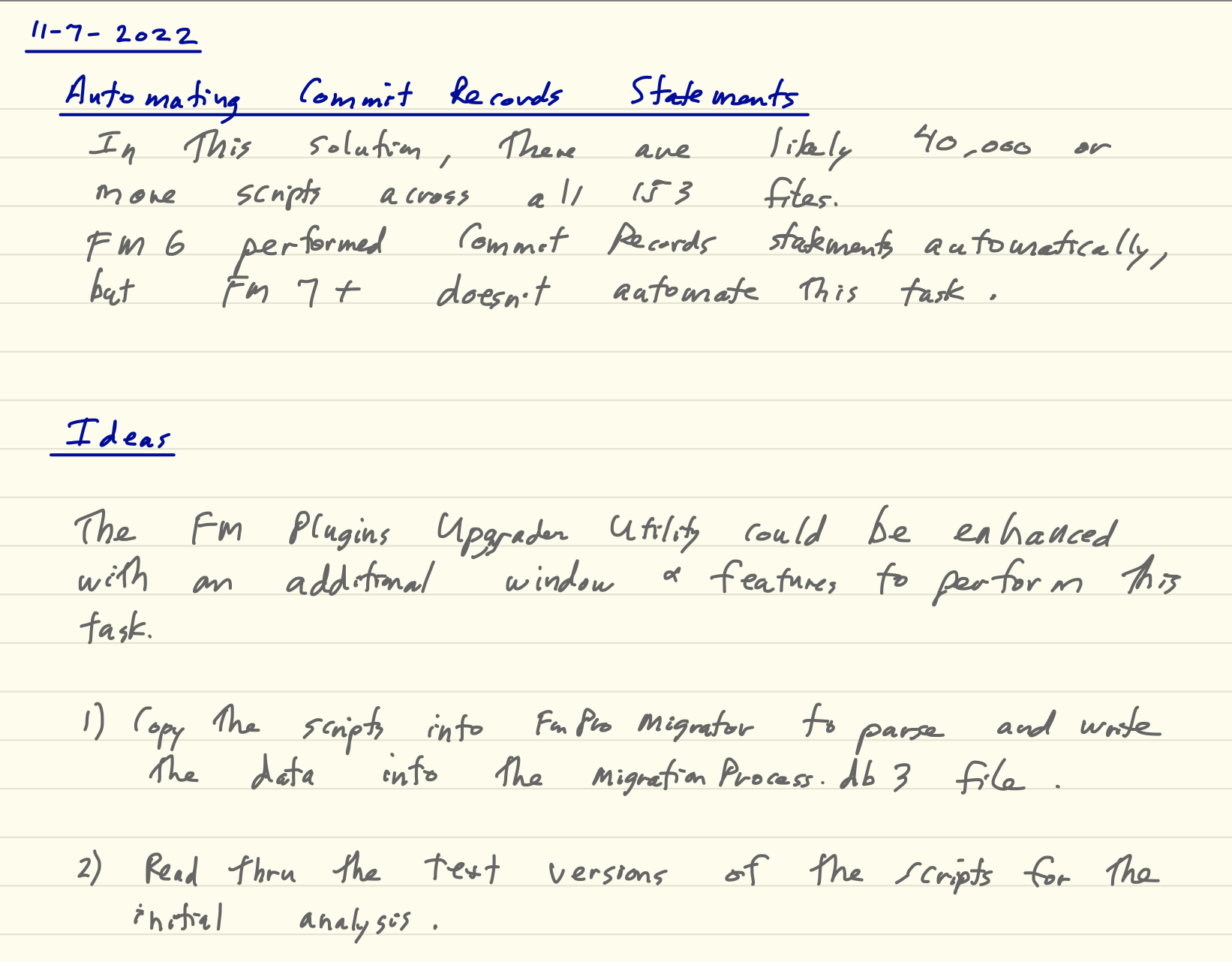 First, there are 20-year-old outdated plug-ins that are no longer available. This tool helps automate the task of finding and updating these old plug-in functions to use new built-in commands. Another very time-consuming manual task is updating scripts to include Commit Records steps because these weren’t required in FM6, but they are required with newer FileMaker versions. Newer versions of FileMaker Pro give developers more control over the process of committing records into the database to enable both transactional commit and rollback functionality.
