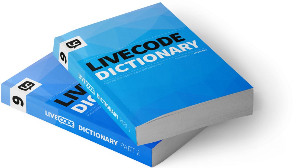 Essential reading for all LiveCode developers. Every LiveCode language term is defined, with examples of use. Over 1000 pages, in two volumes, 4490 LiveCode script terms and 547 LiveCode Builder terms defined. This is an invaluable reference guide. The Dictionary is an A – Z guide with a definition and example of use for each term, cross referenced to related terms. This dictionary will be the latest most up to date version of the LiveCode syntax.