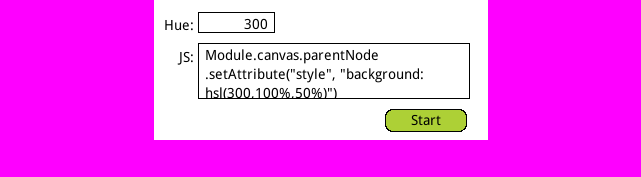 Module.canvas.parentNode.setAttribute("style", "background: hsl(80, 100%, 50%)")