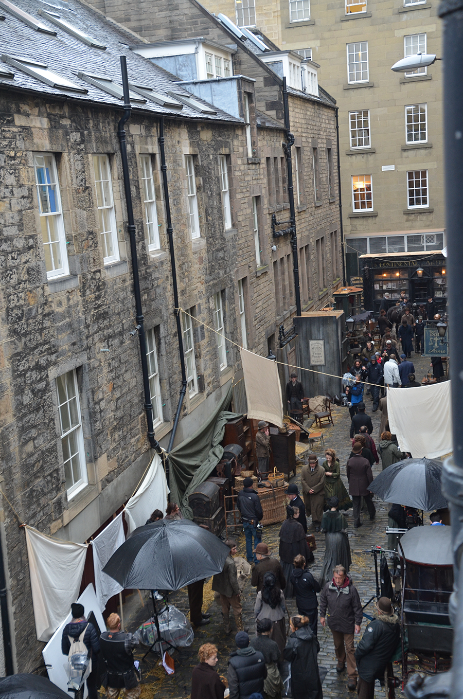 The Secret Agent, a new TV series premiering in 2016 and starring Toby Jones, is being filmed here. In Edinburgh. On our street. Outside our work. And they say you need to go to Hollywood to visit film sets.