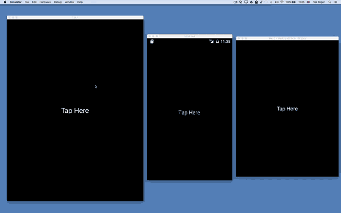 The next screen shows the app running on the desktop, Android Emulator and iOS simulator