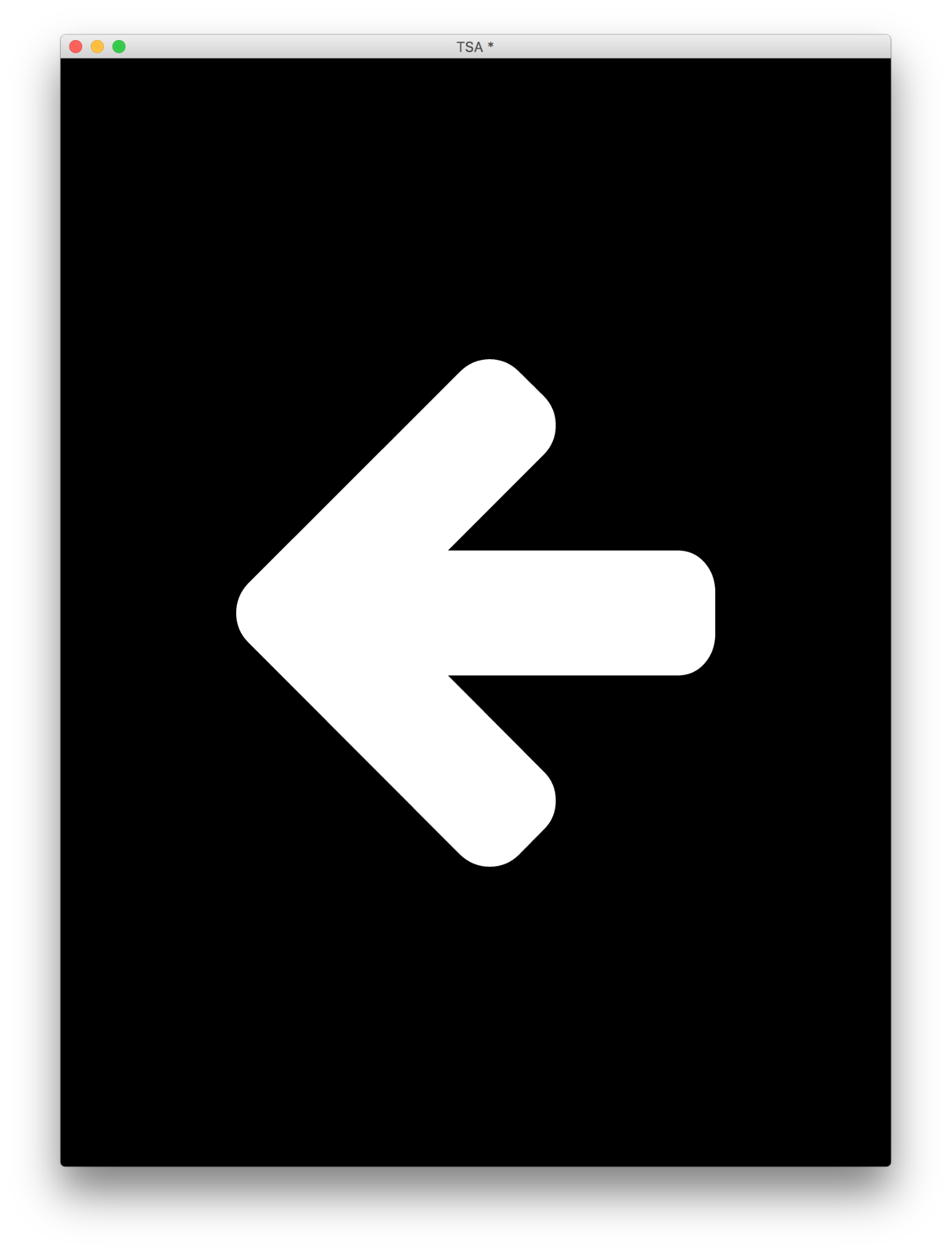 The first thing we need to do is analyse what the application is doing. If we have a look at the above GIF we can see that the app is installed on a tablet device in portrait orientation. The TSA agent taps the screen, as instructed by the text on screen, which in turn randomly displays an arrow either pointing left or right. The arrows are transitioned on and off screen by a fade in and out effect.