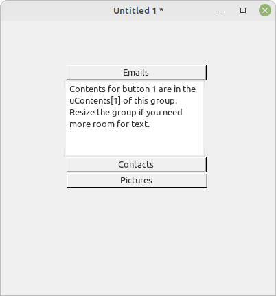 I’m placing three buttons and a field on a new stack, then grouping them. Grouping the controls is important for two reasons.