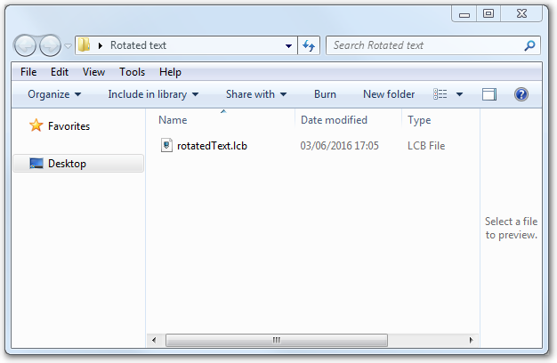 I am naming my file “rotatedText.lcb” but you can name your file anything suitable.