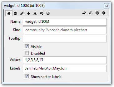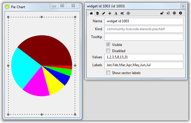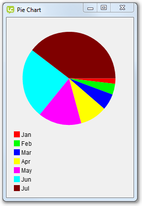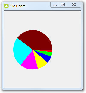 public handler OnPaint()    … previous code    repeat for each element tElement in mValues       add 1 to tSectorNumber       put (tElement parsed as number/tTotal) * 360 into tAngle       put the empty path into tPath      put sector path centered at tChartOrigin with radii [tRadius,tRadius] from tStartAngle to (tStartAngle + tAngle) into tPath set the paint of this canvas to solid paint with element tSectorNumber of mColors       fill tPath on this canvas       add tAngle to tStartAngle    end repeat   … code continues end handler